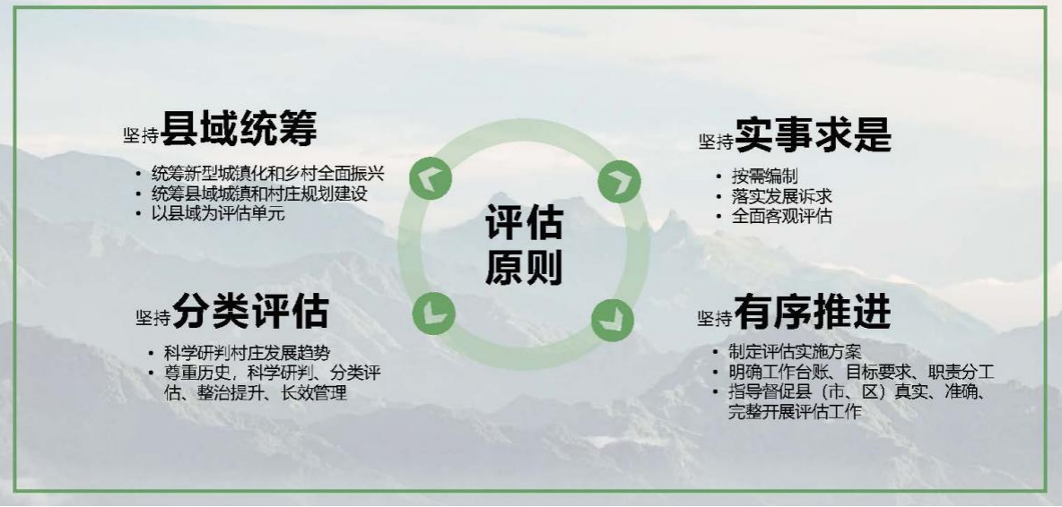 堅持縣域統(tǒng)籌。堅持實事求是。堅持分類評估。堅持有序推進(jìn)。