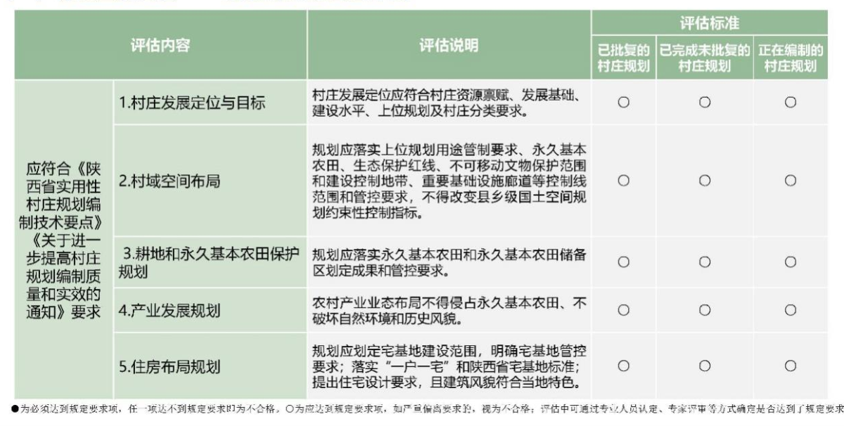 20249月,陜西省自然資源廳《關(guān)于開展村莊規(guī)劃編制質(zhì)量評估工作的通知》要求,以縣為單位,按照《陜西省村莊規(guī)劃質(zhì)量評估技術(shù)指南(試行)》分類開展評估工作。
