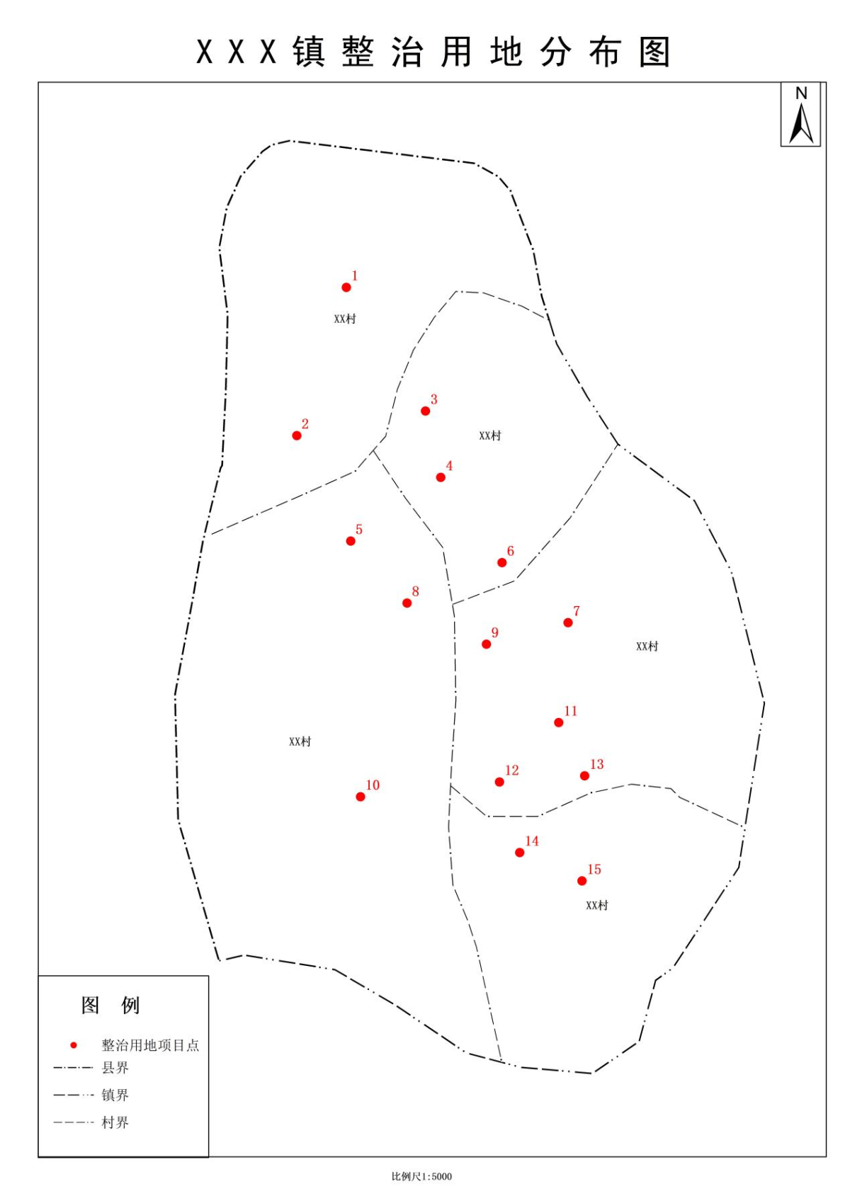 某縣用地整治項目,需要按鄉(xiāng)鎮(zhèn)疊加影像出A3工作底圖,每張工作底圖上都要體現(xiàn)項目名稱、比例尺、圖例、鎮(zhèn)界、村界、用地位置,編號。