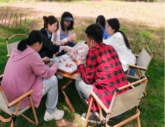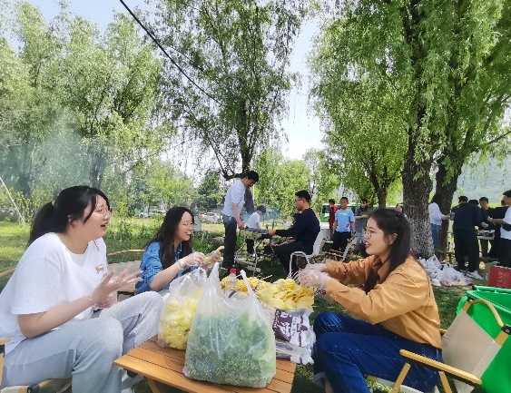 人間煙火氣,最撫凡人心,春游最不能少的就是音樂燒烤啦,大家分工明確,有條不紊的進(jìn)行著擇菜、洗菜、切菜、串菜、串肉,各位燒烤師們毫不吝嗇地展現(xiàn)出嫻熟的烹飪技巧,烤雞翅、烤腸、烤羊肉、烤牛肉、烤玉米、烤紅薯……,各式各樣的烤串,滋滋啦啦,葷素盡有,一次次沖擊著小伙伴們的味蕾,不一會就炊煙渺渺,香味彌漫了。