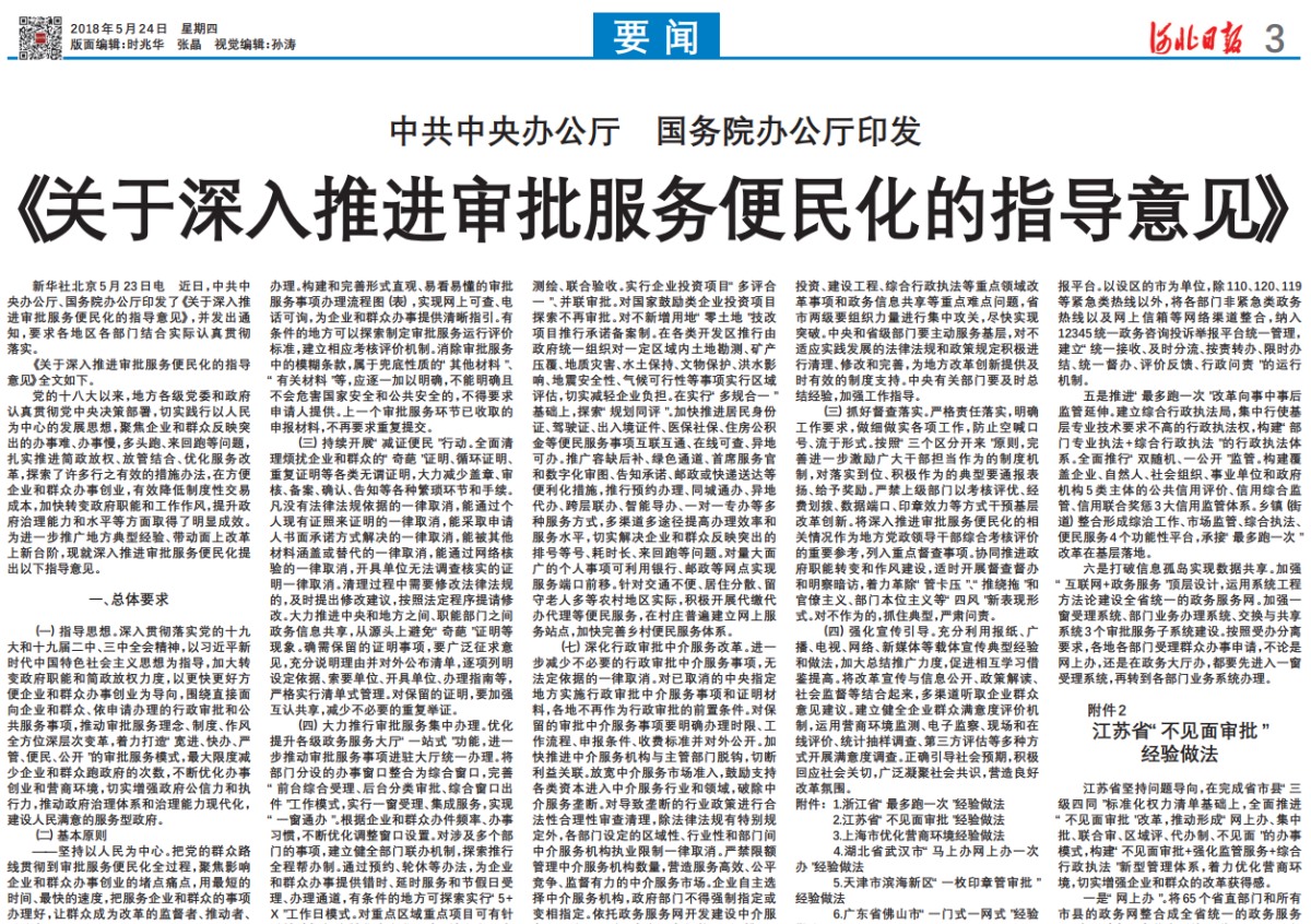 [1]《關(guān)于深入推進審批服務便民化的指導意見》(中共中央辦公廳、國務院辦公廳)
