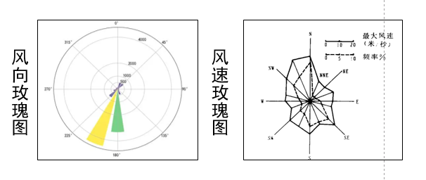 規(guī)劃中常用的是風(fēng)向玫瑰圖,用頻率值來(lái)表達(dá)區(qū)域的風(fēng)向情況,指導(dǎo)用地布局,工業(yè)企業(yè)選址等工作。