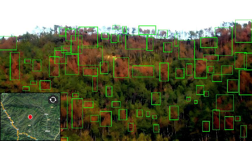 智能識(shí)別施業(yè)區(qū)因病蟲害造成的樹木顏色及生長(zhǎng)狀態(tài)異常問題。定期定時(shí)進(jìn)行施業(yè)區(qū)日常巡檢,用無人機(jī)替代守林員的日常巡視工作,提高工作效率的同時(shí)又減少了巡檢人員的意外風(fēng)險(xiǎn)。支持熱紅外活體識(shí)別,識(shí)別山林中的人員及動(dòng)物。巡檢時(shí)自啟動(dòng)相關(guān)煙火識(shí)別算法,利用熱紅外成像信息,識(shí)別異常高溫地塊。及時(shí)排查避免發(fā)生災(zāi)情。