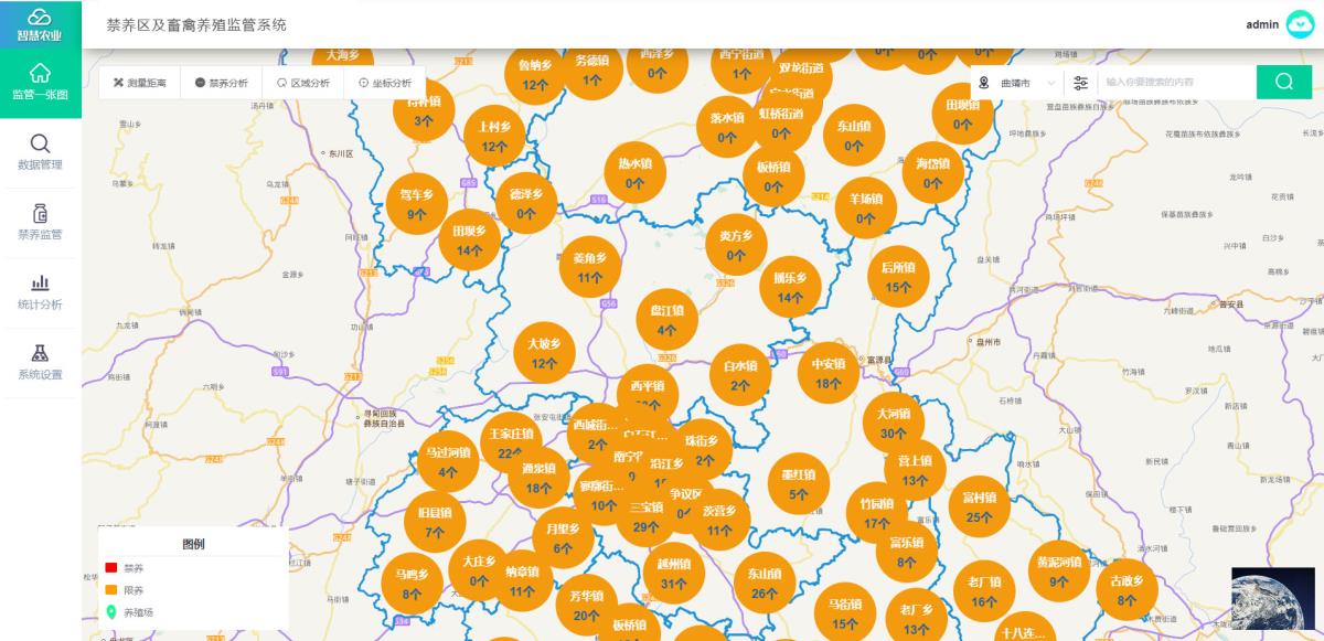 配合開展養(yǎng)殖污染綜合治理、保護和改善生態(tài)環(huán)境工作,整合禁限養(yǎng)區(qū)與養(yǎng)殖企業(yè)信息至禁限養(yǎng)區(qū)+養(yǎng)殖監(jiān)管平臺,通過一張圖展示、大數據分析、監(jiān)督執(zhí)法工作管理、專題數據挖掘等技術,幫助監(jiān)管部門優(yōu)化養(yǎng)殖企業(yè)結構和布局,加強重點區(qū)域、重點流域的環(huán)境保護。